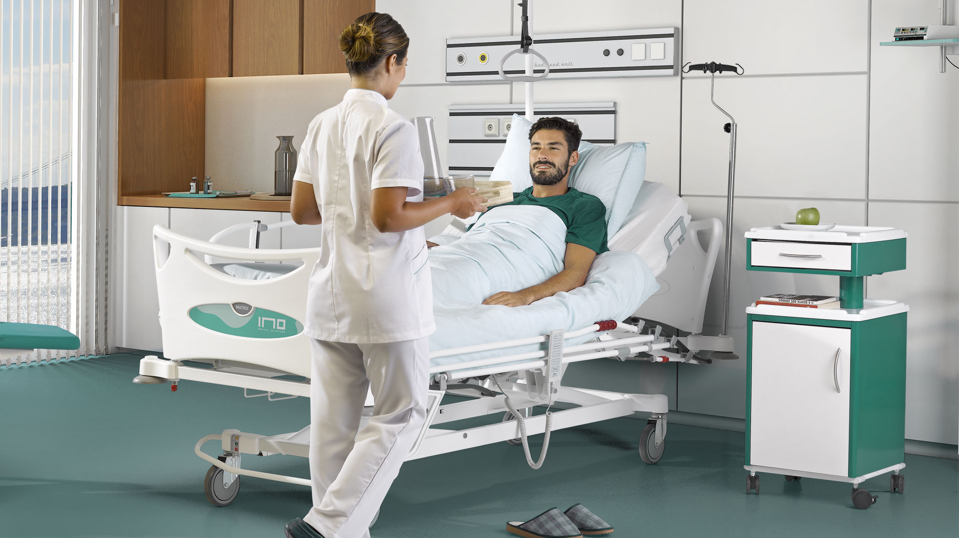 By combining Reverse Trend. and Auto Contour, the bed performs the sitting position. Used to improve respiratory function, ease in the administration of medications and in the practice of autonomous activities.