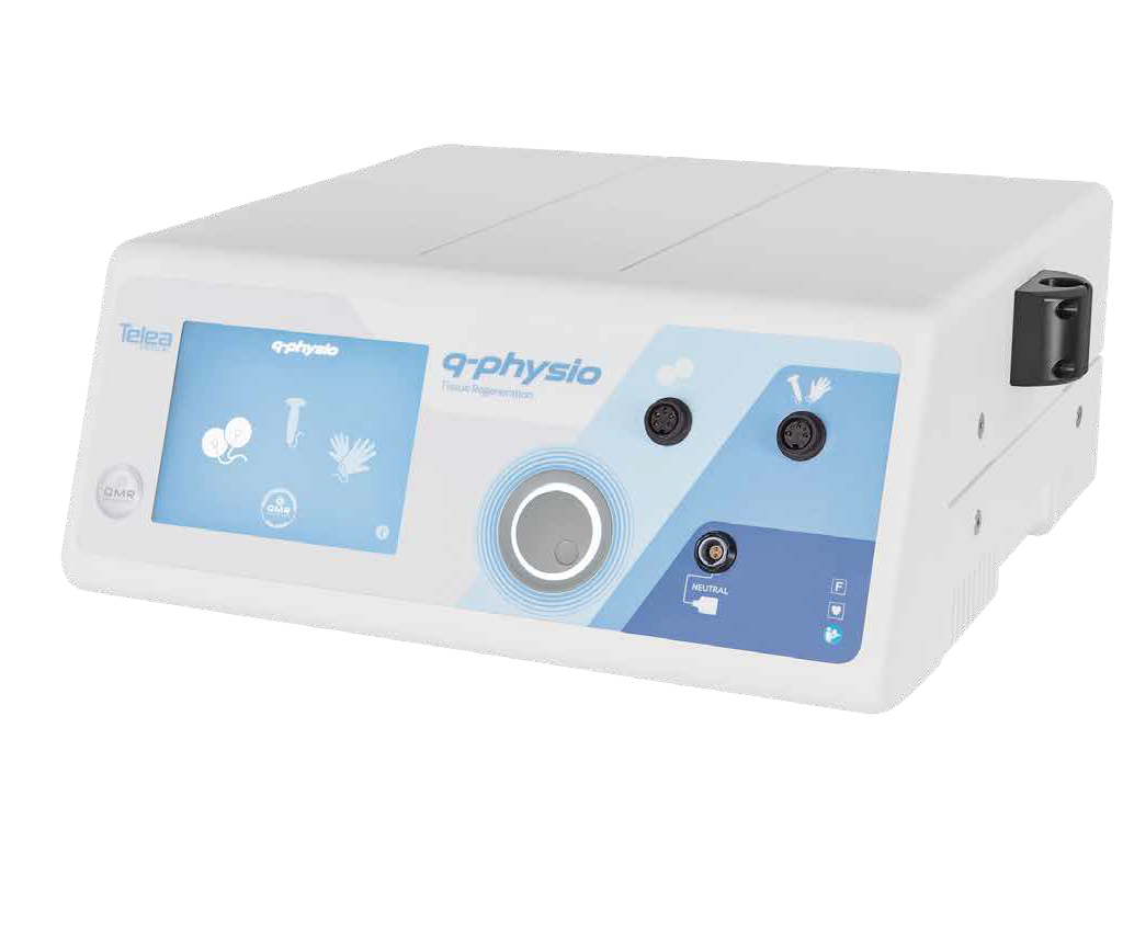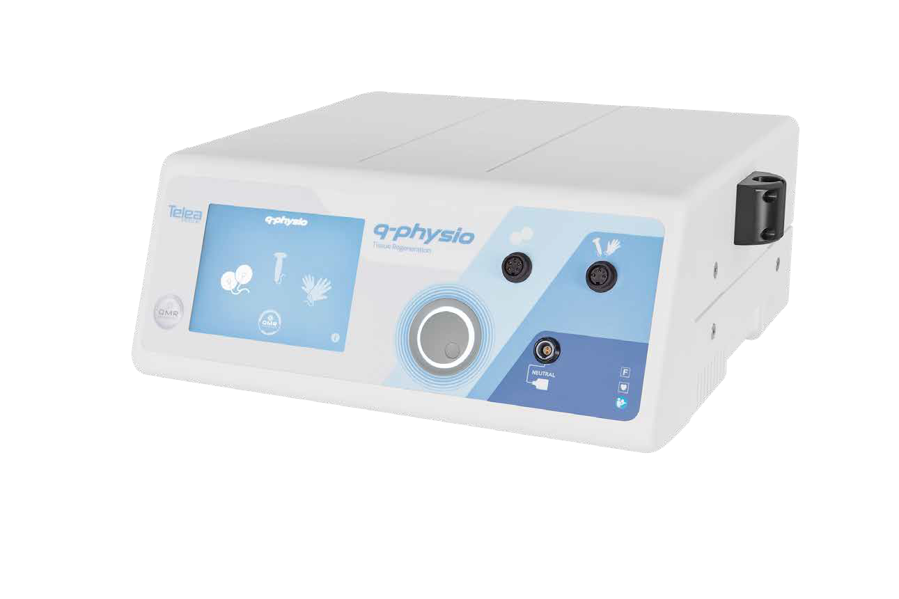 Unlike more traditional Radiofrequency devices, Q-Physio is not based on the Hyperthermia (heating) effect. Due to the peculiar spectrum of multiple frequencies transferred simultaneously, and its unique way of interacting at cellular level the injured tissue is stimulated in such a way that a regenerative process is induced.